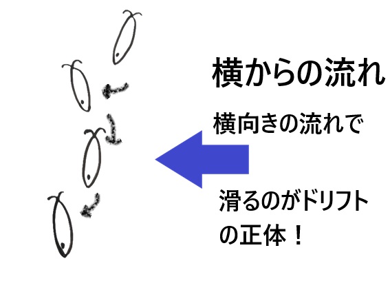 それに対し、横から流れを受けると「滑る」現象が発生しドリフトになります。