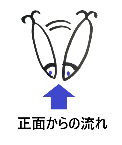 流れを正面で受けたときのスイムと横から受けたときのスイムは違う
