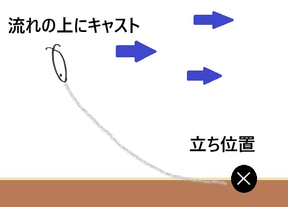 では、どうやってルアーに対して流れを横向きに充てるか?