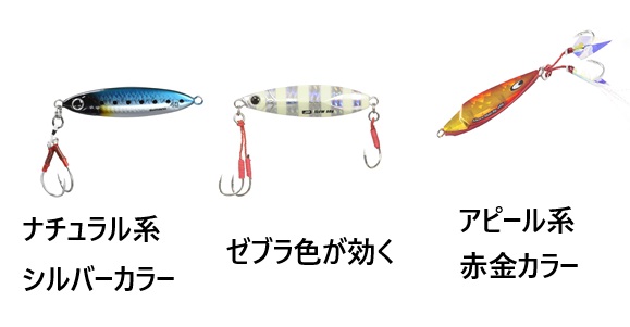 ショアスローに使うルアー「メタルジグ」のカラーはバリエーションは豊富にありますが、基本的なベースカラーが有ります。