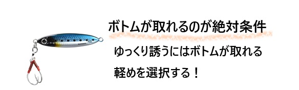 ボトムでゆっくり誘える重さを選択すること。