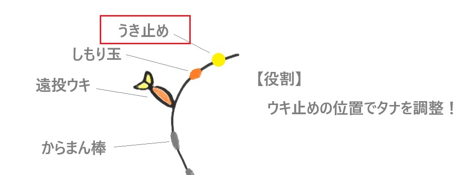 ①ウキ止め:魚が釣れるタナを調整する