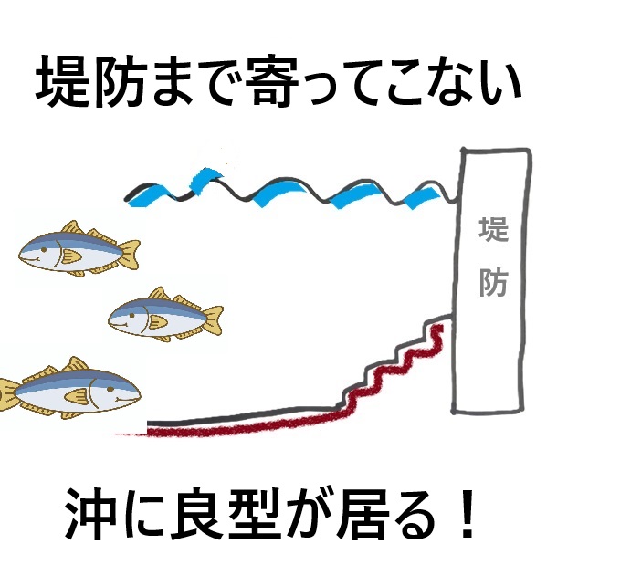特に夏から秋にかけてちょっと大きめのアジやサバは堤防のすぐ近くではなく、ちょっと離れたポイントを回遊することが多いです!