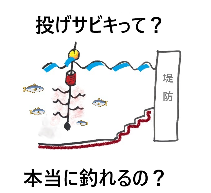 普通のサビキ釣りは堤防の足元でコマセを撒いて魚を釣ります。